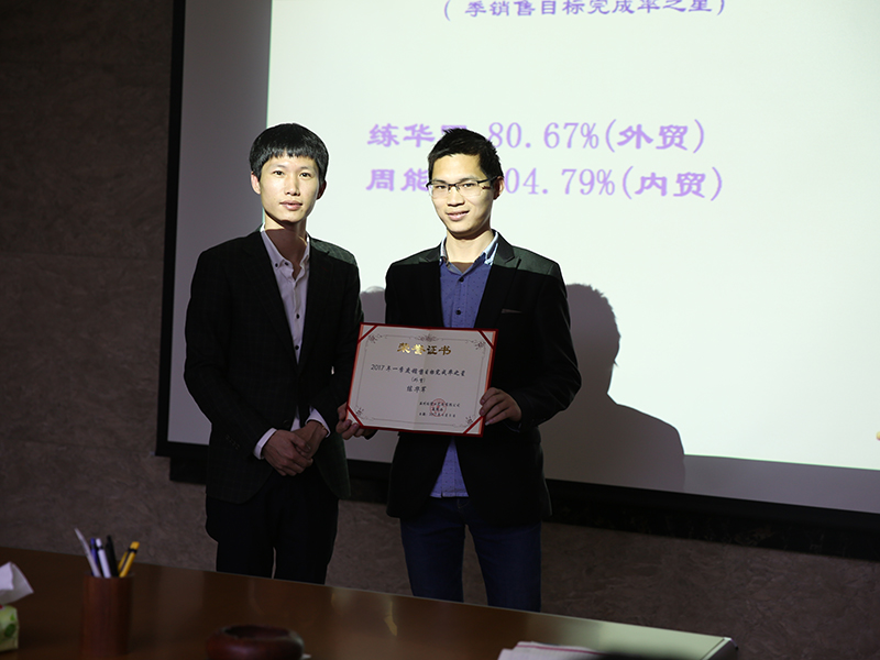 第一季度我們有收獲,有教訓(xùn),有懲罰,有激勵(lì)。外貿(mào)團(tuán)隊(duì)的破局重生是大家有目共睹的,內(nèi)貿(mào)團(tuán)隊(duì)一直以來的領(lǐng)先優(yōu)勢(shì)是所有團(tuán)隊(duì)追趕的目標(biāo),會(huì)中各位同事積極發(fā)言并無私分享相互間的經(jīng)驗(yàn)心得,并定下以PK的形式挑戰(zhàn)自我。