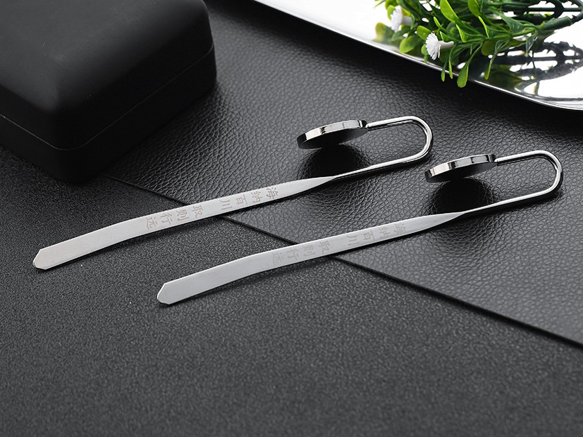 【制作工藝】:沖壓 【上色工藝】:烤漆/激光雕刻 【電鍍顏色】:銀色 【背面工藝】:砂底 【產品配件】:如意書簽桿
