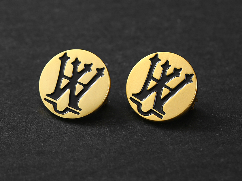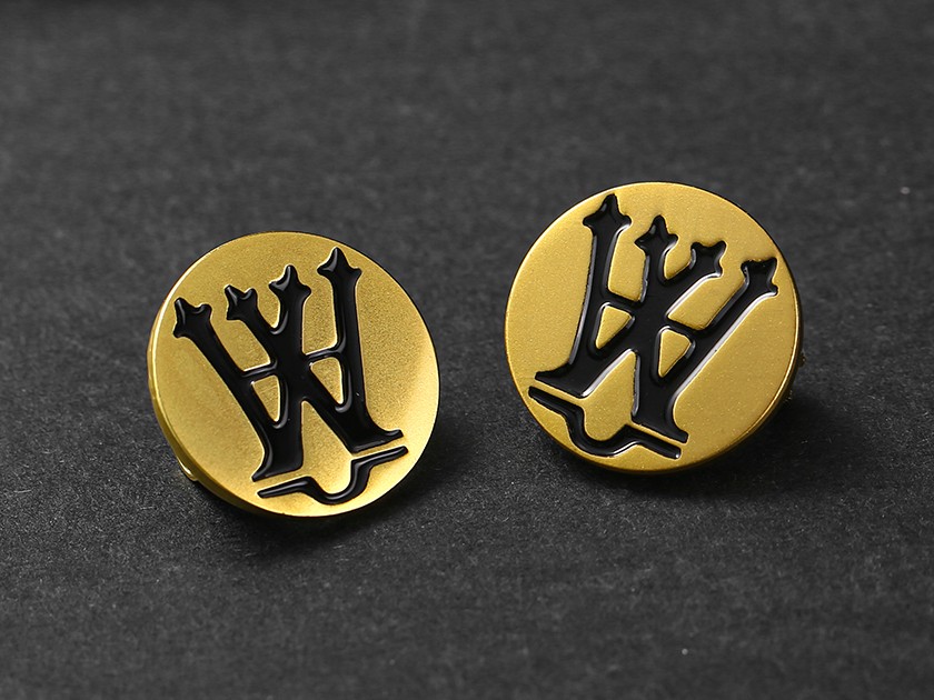 【制作工藝】:沖壓 【上色工藝】:烤漆 【電鍍顏色】:金色 【背面工藝】:砂底 【產(chǎn)品配件】:蝴蝶扣