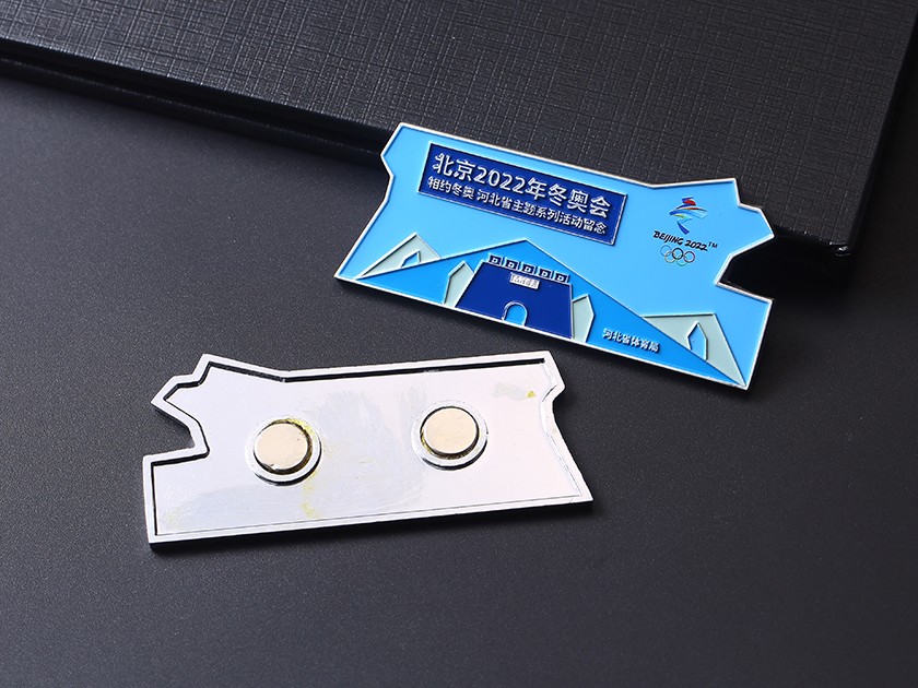 【制作工藝】:沖壓 【上色工藝】:烤漆 【電鍍顏色】:銀色 【背面工藝】:亮面 【產(chǎn)品配件】:磁鐵扣