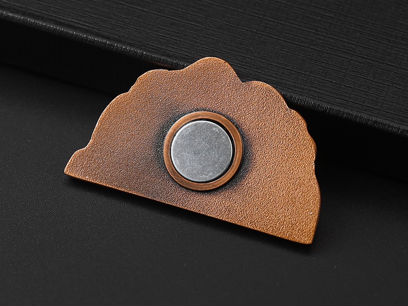 【制作工藝】:沖壓 【上色工藝】:烤漆 【電鍍顏色】:紅古銅 【背面工藝】:砂底 【產(chǎn)品配件】:磁鐵扣