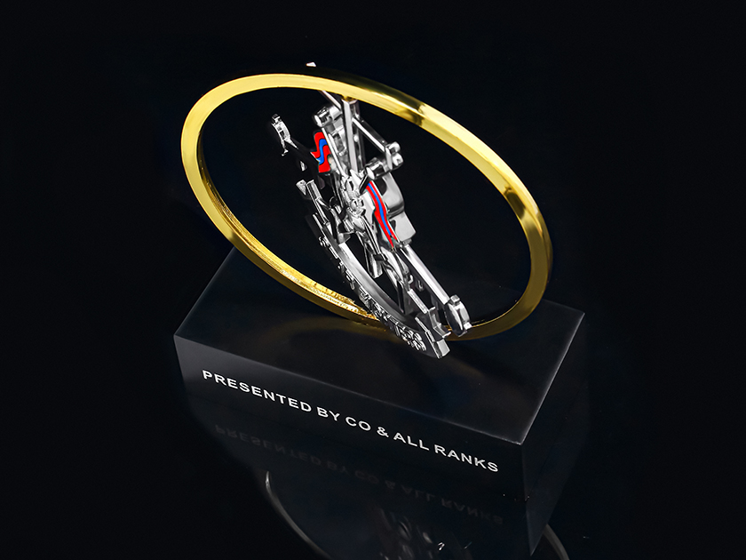 【制作工藝】:壓鑄 【上色工藝】:金屬本色 【電鍍顏色】:雙色 【背面工藝】:亮面 【產(chǎn)品配件】:木底座