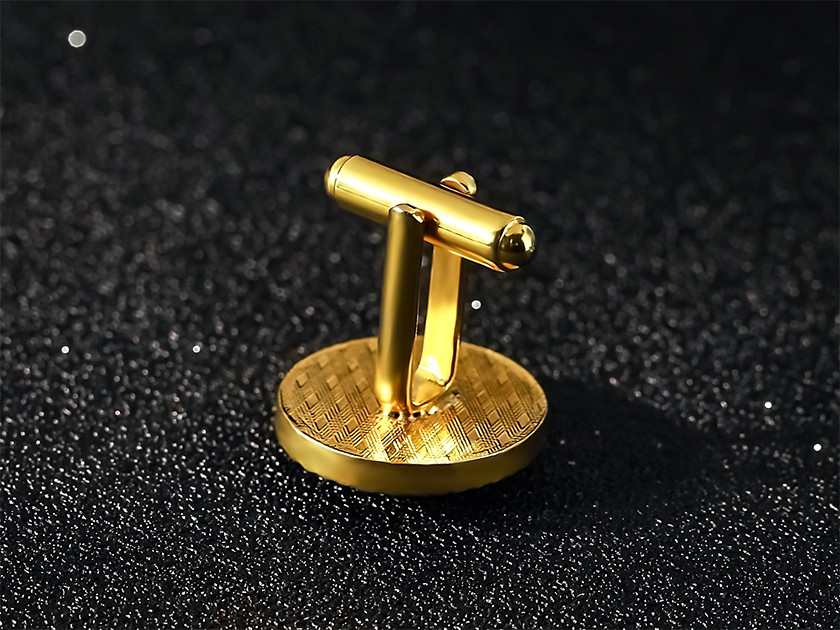 【制作工藝】:壓鑄 【上色工藝】:金屬本色 【電鍍顏色】:金色+銀色 【背面工藝】:網(wǎng)紋 【產(chǎn)品配件】:袖扣腳